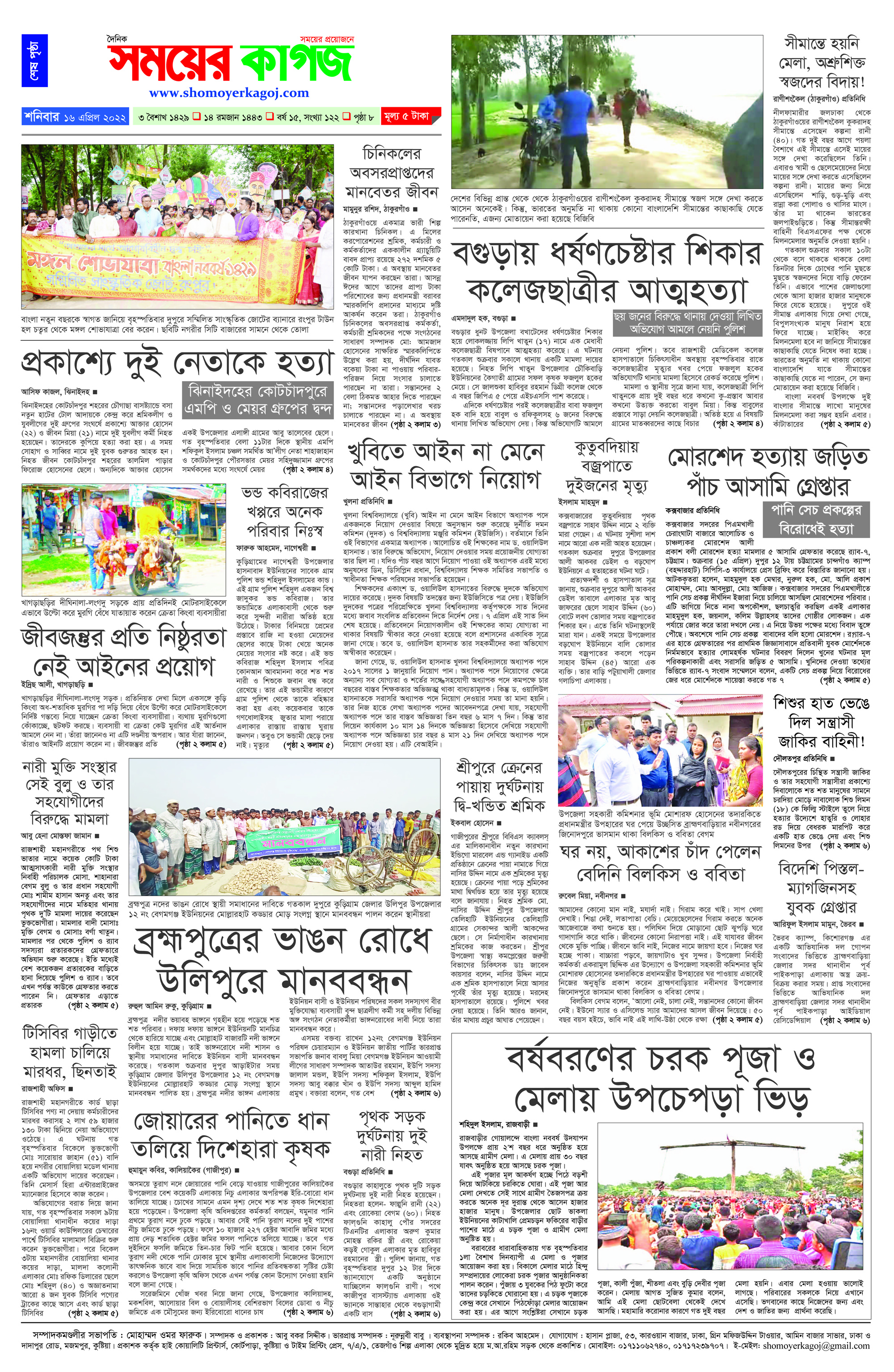 ই-মেইল: shomoyerkagoj@gmail.com , ওয়েব: www.shomoyerkagoj.com, মোবাইল: 01711-062740